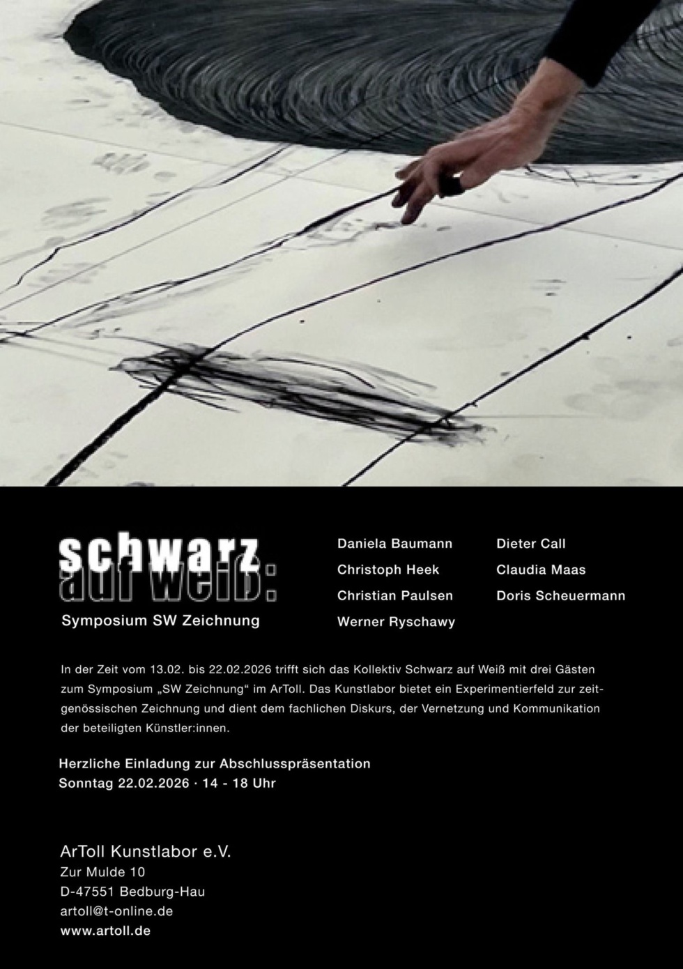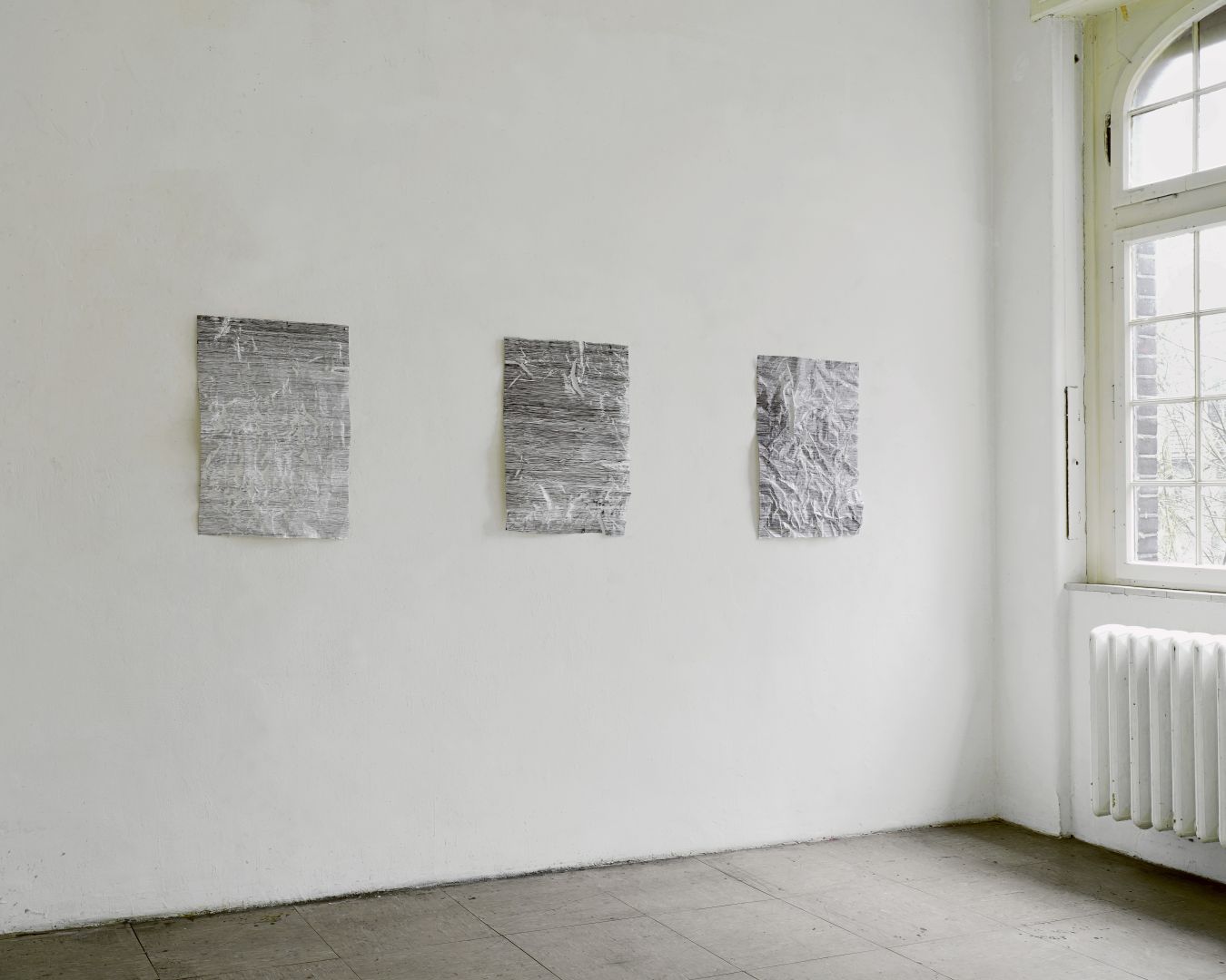 Die Künstlerin Doris Scheuermann aus Bonn zeichnet meist mit Tusche auf Papier. In ihrem aktuellen Projekt time sheet zeichnet sie in langsamen Pinselstrichen Linien direkt auf eine Wand. Im Entstehungsprozess reagiert Doris Scheuermann konzentriert auf Unregelmäßigkeiten. So wird aus der zu Beginn geraden Linie in zahlreichen Wiederholungen ein Liniengebilde, das sich immer weiter krümmt und windet. Die BesucherInnen sind herzlich eingeladen den Entstehungsprozess live zu verfolgen.